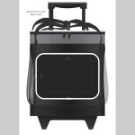 Large 16L trolley cooler bag with a two-stage pull up handle and robust dual wheels. It has thick PE foam insulation encased in a waterproof PEVA inner liner and the outer construction is 600D polyester with decorative ripstop nylon trim. Other features include a zippered top closure, two large side pockets, a large zippered front pocket, woven carry handles with a Velcro cuff and trendy elastic lacing which is ideal for holding a sweater or light jacket.